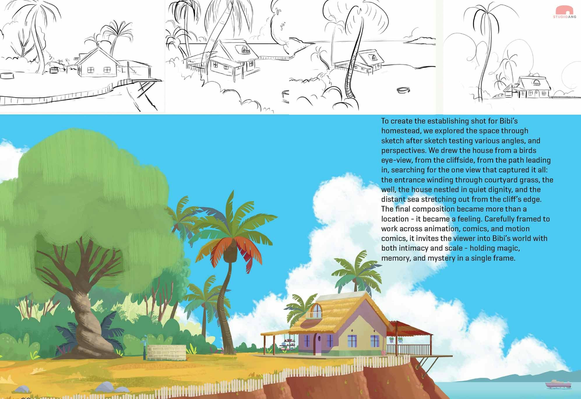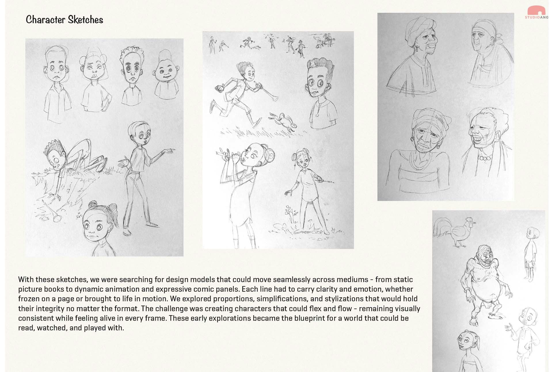 A simple question - what if learning could feel like magic? - sparked a six-episode proof of concept. This post shares Studio Ang’s look-development: the sketches, layouts, and visual decisions that shaped Tisa, Makutano, Bibi’s homestead, and the character language for a transmedia world built to hold storybook, audiobook, comics, motion comics, animation, and interactive play.